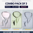Combo Pack of 3 Men’s Formal Shirts – Stylish & Versatile Collection (Half & Full Sleeves, With/Without Pockets) (FS-47)